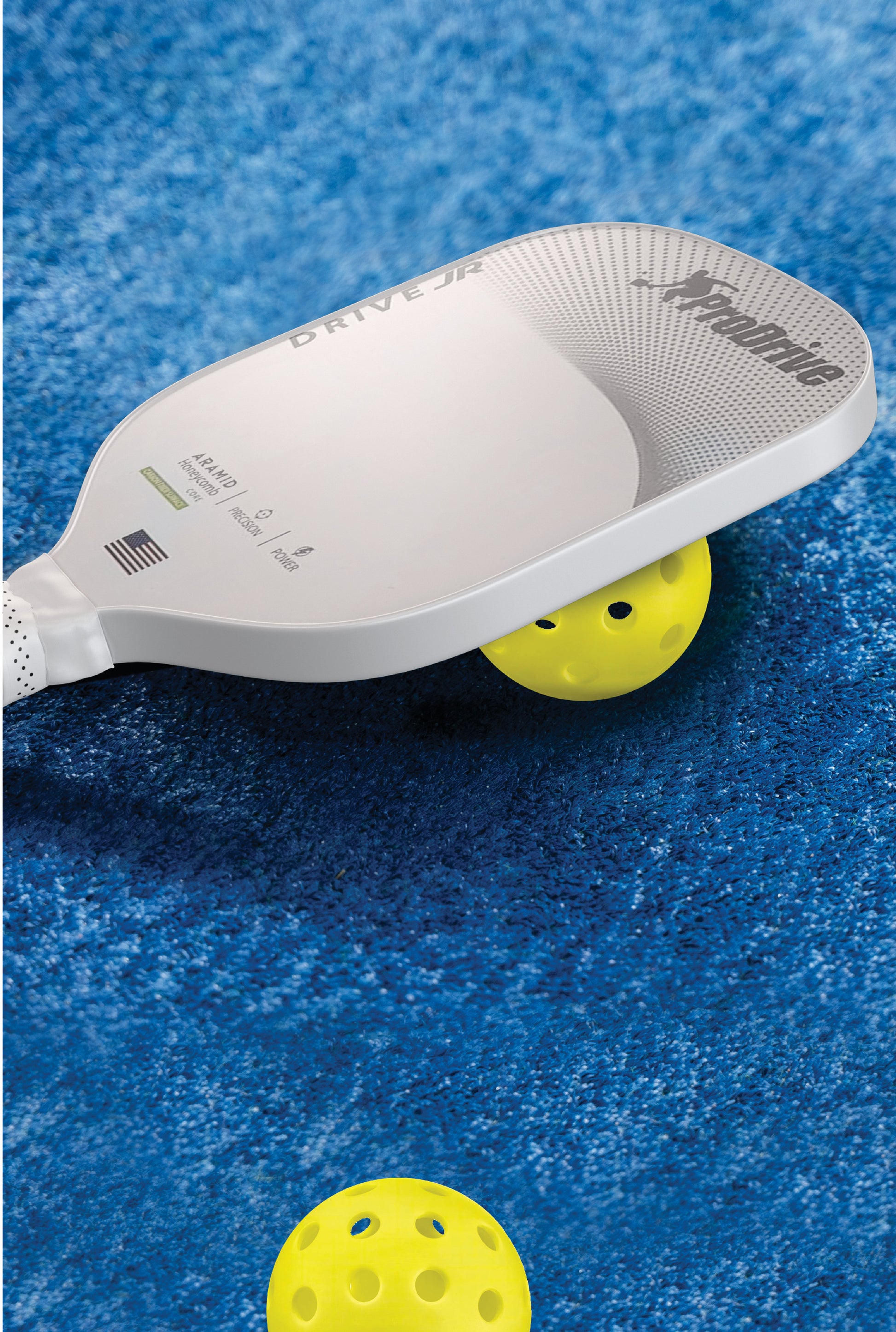 Crafted with the same attention to detail and commitment to quality as our renowned ProDrive paddles, the Drive Jr. features a durable construction that can withstand the demands of rigorous play. The lightweight design ensures ease of handling, enabling young players to swing with confidence and agility.