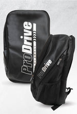 ProDrive´s Backpack is a luxury bag in black PU leather with chrome cosmetics. This bag can hold up to 3 paddles and all your extra gear for a day on the court. The two main compartments have interior pockets as well. There are 2 outside pockets that can hold your valuables - keys, wallet, phone, etc. Each side also has a mesh pocket for a water bottle. The bottom of the bag has a separate space for shoes or sweaty clothes